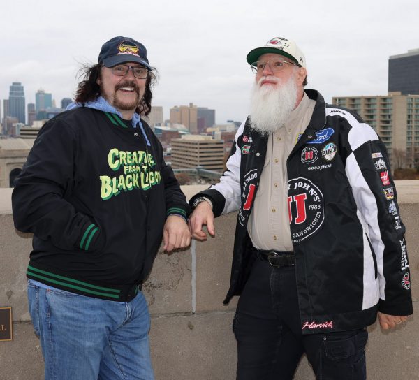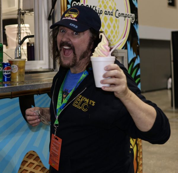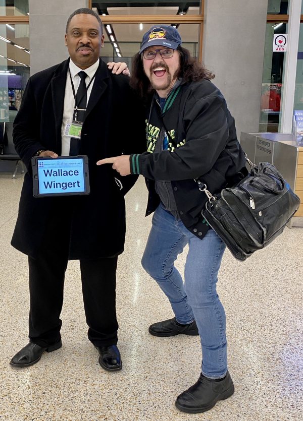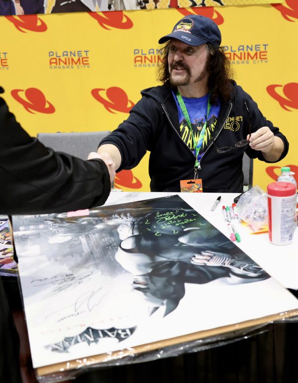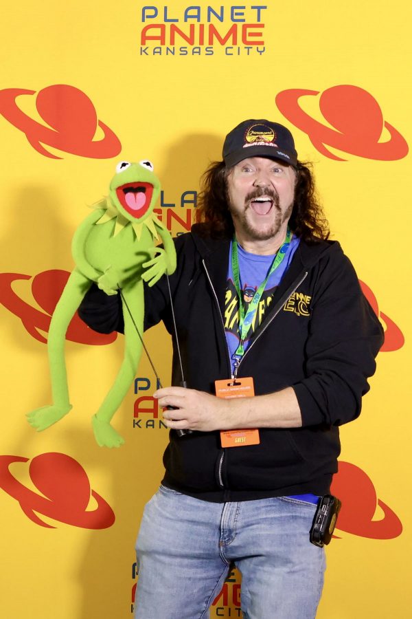 Friday the 21st – KANSAS CITY HERE I COME! – As is usual the night before a flight, I didn’t sleep very well. The thunderstorms contributed to that considerably as well. But I got up on time, cleaned up, and headed to the airport to meet my pal Mark Fullerton. He would be going along with me to take photos and tour Kansas City with me. I’ve had a good friend for over 43 years named Steve Van Dyke who has lived in Kansas City for a very long time. He will be showing us around the city next Monday. I’ve known him since 1982 when he appeared around the Sioux Falls area as The Phantom Juggler. He even taught me how to juggle and do balloon animals back then. I was a radio DJ on a local station that he listened to regularly, and we started hanging out. In The Phantom Juggler’s secret identity as Steve, he worked with computers and technology. In late 1983 he took a job in Kansas City. I was elated to learn that a local UHF station in K.C. ran the 60’s “Batman” TV series every morning. Steve was kind enough to make regular Bat Tapes and send them to me in Sioux Falls for my friends and I to enjoy. When I left Sioux Falls in January of 1987 to make my move to L.A., the first night I stopped over in Kansas City. He and his wife Winnie were kind enough to let me crash on their living room floor for the night. When I recently signed the contract to appear at Planet Anime in Kansas City, I sent Steve a note telling him I’d love to see him while I was in town, and that I would NOT need to crash on his living room floor again. The convention was getting me a hotel room. Hahaha. Steve knew me back when the situations in my life weren’t so good, and he was always a good friend who was there for me. I was looking forward to seeing Steve and Winnie again. By the time I got to the airport it was raining quite heavily. I hauled my luggage into the airport and found Mark. We checked in, got food, and got on the plane to Salt Lake City. While on the plane it occurred to me that I hadn’t been to the airport in Salt Lake City in about 50 years. Back in 1976, when my family took a vacation to California, the connecting airport was the one in Salt Lake City. I was recently reminded of that fact when I uncovered the journal I wrote about that trip in a storage bin in my garage. Obviously, that trip was a life-changing experience for me. The flight to Kansas City was delayed by about 1 and a half hours, but it’s better to have the connecting flight delayed than the originating flight. So we just hung out in the airport and waited. We started talking to a couple who were traveling to K.C. with their cat in a carrier. They had lived in Taipei for many years, but were moving back to Kansas City. Their cat seemed like he was doing pretty well, considering they had been flying about 20 hours. It didn’t take very long to get to Kansas City, but by the time we landed the entire cabin of the aircraft was hearing the protestations of a pissed-off cat. We were all laughing because the cat had clearly had enough traveling. Poor kitty. When I stood up to get off the airplane, a flight attendant named Chris asked if he could have a word with me. I got out of line and stood in the galley to chat with him. He said, “I know you had the meatballs for your in-flight dinner, but wouldn’t you have rather had lasagna?” I said, “Yeah, that would have been nice I guess.” Then it occurred to me what he was saying. In my Jon Arbuckle voice I said, “You mean like the kind I make for my cat Garfield?” He laughed and he said he recognized my name on the flight manifest. Then he said, “We hardly ever do this, but could I get a picture?” I told him I’d be glad to, and we took a shot together. I love when stuff like that happens! Mark and I made our way down to baggage claim, and there before us was a guy holding a tablet with my name on it. It was Anthony, our driver. Fabulous! After getting a quick shot, we apologized for the flight delay, and he drove us to our hotels. He dropped Mark at the Phillips hotel, and then he dropped me at the Loews. I checked in, but the lobby was buzzing with all sorts of drunks in wacky costumes. It WASN’T the convention-goers, but rather a group of drunken H&R Block accountants who were wrapping up a week-long convention. I got my luggage to my room, and then made contact with the Celebworx on-site staff to let them know I was there. They said they were in the lobby doing some work and I needed to go down and get my credentials. This trip I traveled with my Kermit replica Muppet, so I took him downstairs with me to have some fun. The Celebworx folks were amazed! Each year the volunteers assign an animal mascot to the convention as a theme, and oddly enough, this year’s animal mascot was a FROG! We took some shots and had some laughs. I was a bit hungry, so I got some fried chicken from the hotel restaurant and headed to my room. On the way up to my room I didn’t take Kermit off my hand, so I just kept him on during the ride up in the elevator. There was a very drunk lady in the elevator with me who kept saying in a throaty voice, “Kermit D Frog. Kermit D Frog.” I just shook my head and smiled and said, “Yup.” Weird and annoying. I was glad to get back to the quiet and solace of my room to eat, unpack and relax. It was going to be a great weekend!
