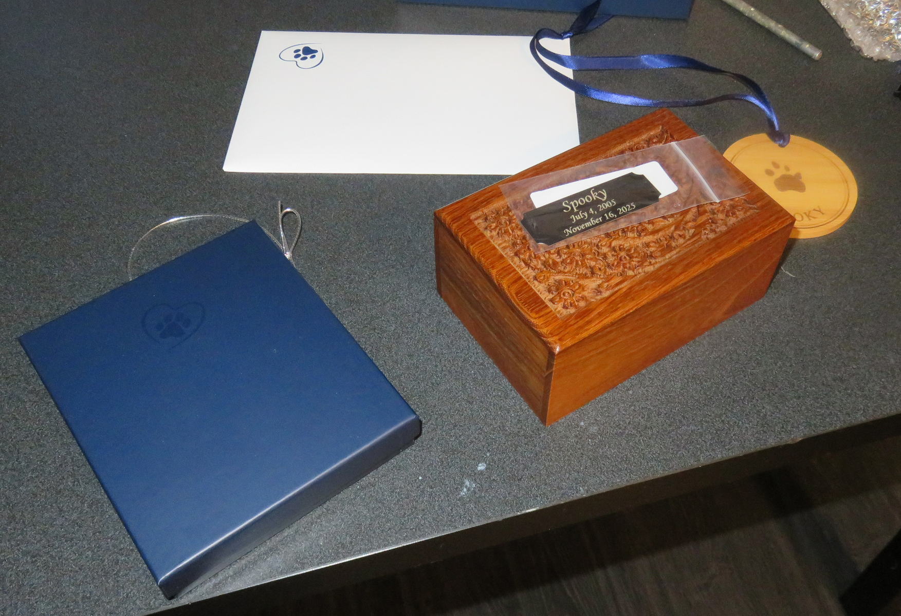 Monday the 17th – THE END OF AN ERA! – Still feeling a bit sad about letting my cat go the night before, I tried to keep my chin up. It’s the first time in about 24 years that I’ve been totally petless. I got Sassie in 2001, and then got Spook in 2005. Sassie died in 2011 so it was just Spook and I for about a year, and then in 2012 I got Roxy. Then when she passed away in 2023 it was back to just Spook and I again. Now that he’s gone, the house is really quiet. I cleared out the last of Spook’s stuff. I cleaned out the bathroom on the second floor, which was Spook’s bathroom. I threw away all the potty pads and his litter box. I sealed up the remaining cat litter and I’ll give it away to one of my friends who has cat. The second floor shower, which served as Spook’s private potty, was all cleaned out and scrubbed. Then I turned my attention to the kitchen where he lived out his final days. Because of his “inconsistent” potty habits, I had him living exclusively on the second floor. For the last several months of his life he was blocked from access to the living room, and the upstairs bedrooms. The beanbag that he used as a bed got bagged and thrown out, along with a blanket he had been sleeping on. It was too full of poo-poo stains to try and save. When the maids come on Thursday I’m going to have them do a deep clean of the kitchen and bathroom areas. I packaged up all of his remaining food and treats, and I’ll give them away to interested parties. I made a few calls, and then contacted the office of the surgeon who would be doing my thyroid surgery. I postponed the surgery that was going to occur on 12/2 because there’s just too much going on right now. The Kansas City trip, Spook’s passing, my never-ending tooth issue, Thanksgiving, etc. It was all too much. When the weight of everything started to get too heavy, I relaxed and meditated on the issue last week. The words I heard were “one thing at a time.” I always seem to get the best advice when I relax and open my mind and heart. The little voice was correct – one thing at a time. I’d get this tooth issue settled, and then tackle the thyroid surgery after the first of the year. It was still quite rainy out, so I decided to go back to bed and sleep to the rain for a while. It’s soothing and relaxing. Later I got up and did some work, and then started getting a craving for roast beef. I called my pal Chris Malmin to see if he wanted to meet me at the Coral Café for dinner. Despite the heavy rain, we both ventured out to get some good ol’ comfort food. It was a nice dinner, and it was good to see him again. During dinner the temporary crown on my #31 tooth came off. I heard a crack on that tooth and thought it was odd, since I wasn’t chewing anything particularly hard. I mean, it was roast beef, after all. But the crown came off cleanly, so I put it in a small Ziploc baggie that I had with me. I’d visit the dentist this week to have it reattached, as it seems like it’ll be a while before I’m ready to have the permanent crown attached. I still have to have a “crown lengthening surgery” before that happens. That involves cutting away about 1mm of my gum to expose more of the tooth so the crown has more of the original tooth to grab on to. I got the leftover roast beef to-go, along with a couple orders of their delicious beef and barley soup. But with everything on my mind lately, I realized when I got home that I had left without taking my food. Ugh. My brain simply was not working at its optimum. It was pouring rain on the way home; the heaviest that it’s been since our rainy spell started. I rested and relaxed for a little bit, and by the time I got around to taking my nightly WOG (walk/jog) the rain had subsided, and had given way to a cold, thick fog. Had it not been a chilly 47 degrees it would have been a pleasant time. The previous nights had temps around 55, but it would seem that the heavy rains brought on winter. Seemingly, temps in the mid 40’s during my WOG times will most likely be the rule for the foreseeable future. I came back inside and wrote Wally’s Week, but recounting the whole situation with Spooky made me a bit sad again. But all sorrow aside, it was the right thing to do. He was ready to go, and he had enjoyed a long, spoiled life of 20.5 years. You just can’t ask for more than that, I guess.