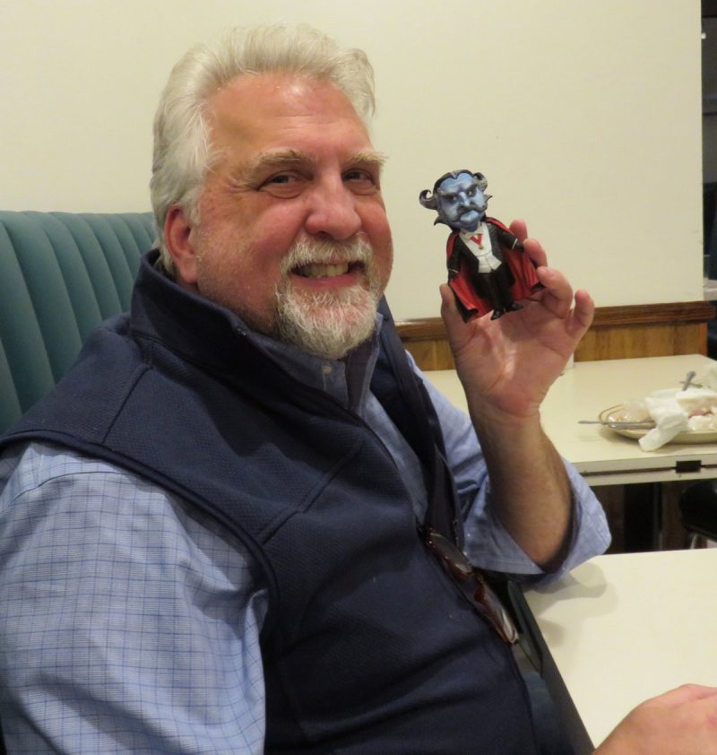 Danny Roebuck is all smiles holding up his action figure from “The Munsters.”