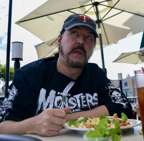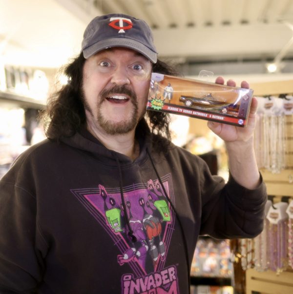 Wednesday the 8th – COUNTDOWN TO FUN! – When I awoke I had a message from the physical therapy place asking if I could come to my appointment earlier. I told them it wasn’t possible as I had a very full day ahead of me. I was rather relieved, as I had lots to do and really didn’t have time for the appointment anyway. I drove to the bank to make some deposits, hit Staples to buy a new day planner for 2024, hit GNC for some supplements, picked up some tuna for Spook at Trader Joe’s, dropped off a signed photo at the post office, and then went to Harry’s Camera to pick up the prints I had made from some old negatives. For my “Creative Christmas” project this year, I’m going to start assembling photo albums of my L.A. years. I completed all of the South Dakota photo albums a while back, and now it’s time to compile the L.A. ones. I had taken lots of pictures when I first moved here, but for some reason I was missing a lot of the photos. So I’m having all of the early negatives reprinted so I have plenty of photos for the albums. I got some metal eyes at the hardware store to secure my acoustic panel, and drove to Paty’s for lunch. But their patio was all masked off as they were doing some sort of construction. So I kept driving to Weinerschnitzel to get a couple of chili cheese dogs. I picked up my packages at my box, and then went to Michael’s to get a frame for some original artwork my buddy (and Nickelodeon animator) Jeff Sornig did for me during his recent visit to L.A. It’s a great pic of Tallest Red from “Invader Zim!” I came home and mounted the artwork and it looks perfect. On top of the action figure cabinet in my theatre I have several pieces on display. But for the ME-TV shoot I’m going to clear those off temporarily and put some of my Muppet replicas up there. I needed to place them on top of the cabinet to see which ones I’d have room to display. I need to have some custom risers made for the Muppets that will be in the back row, so I contacted my pal Joe Pendleton to see if he would whip them up for me. They don’t need to be anything fancy, just risers to lift the Muppet replicas a little bit higher. Once I got the measurements I needed I drew up some plans and emailed them to Joe. I took my nightly WOG and spent some more time in the anti-grav chair outside. I packed some more stuff for San Diego, made a salad and watched another episode of “Boris Karloff’s Thriller.”