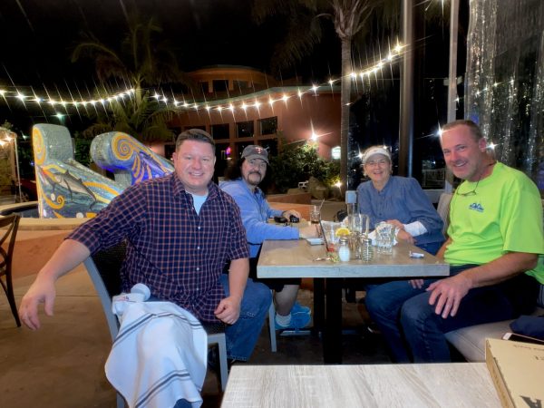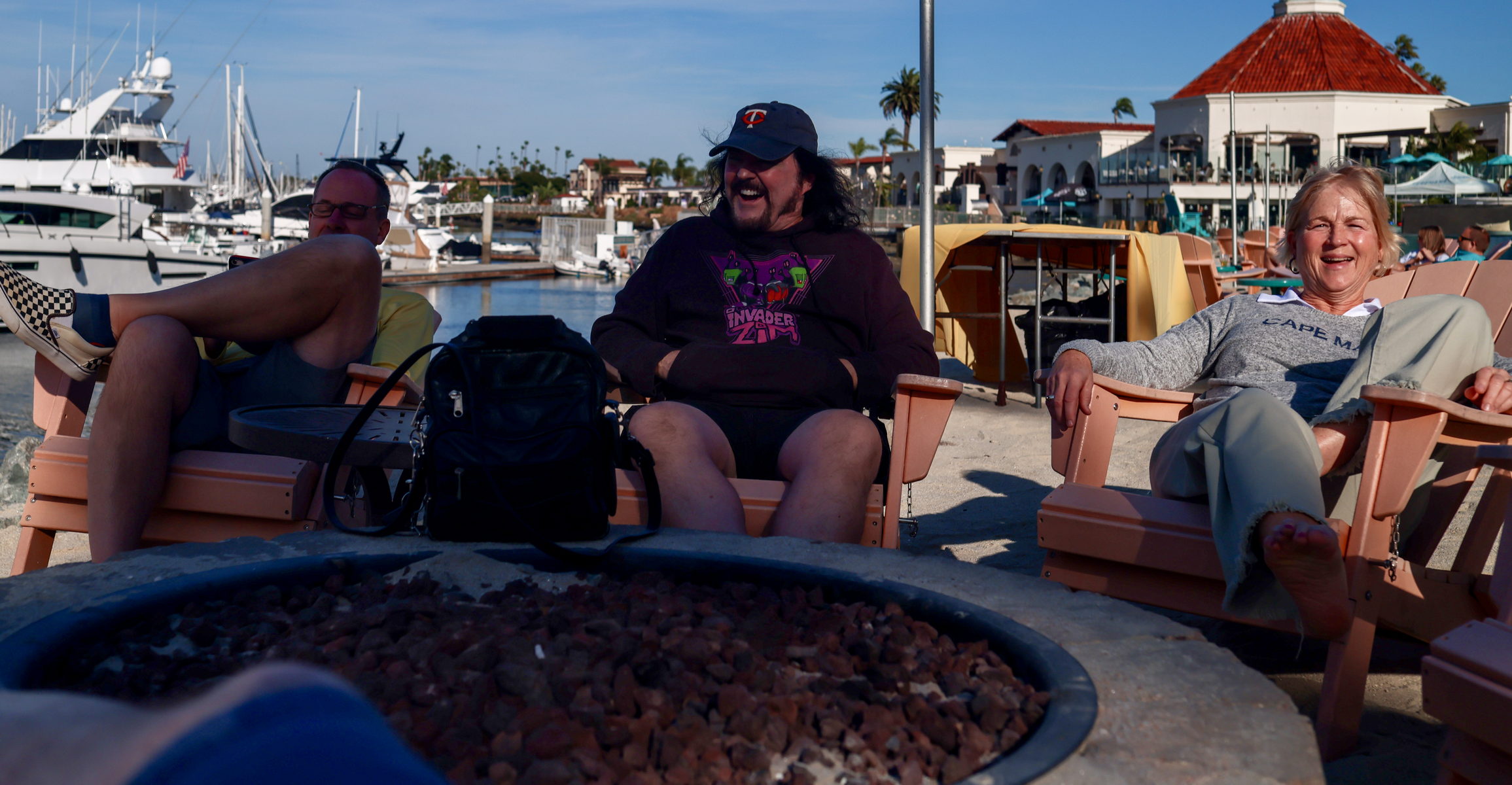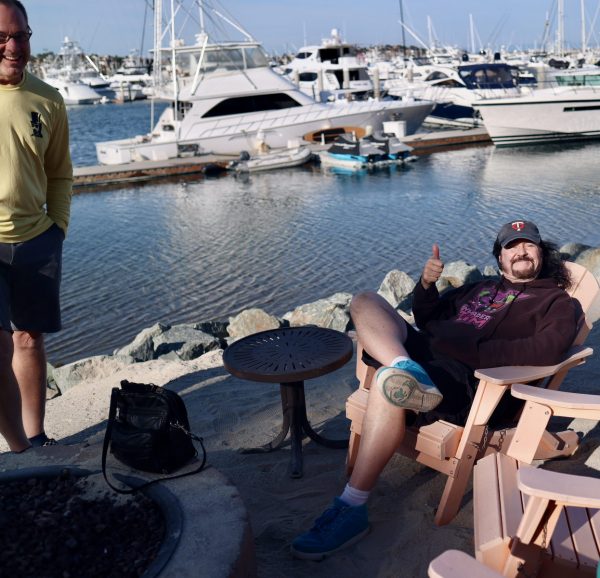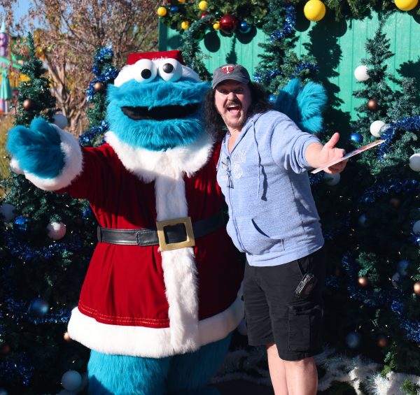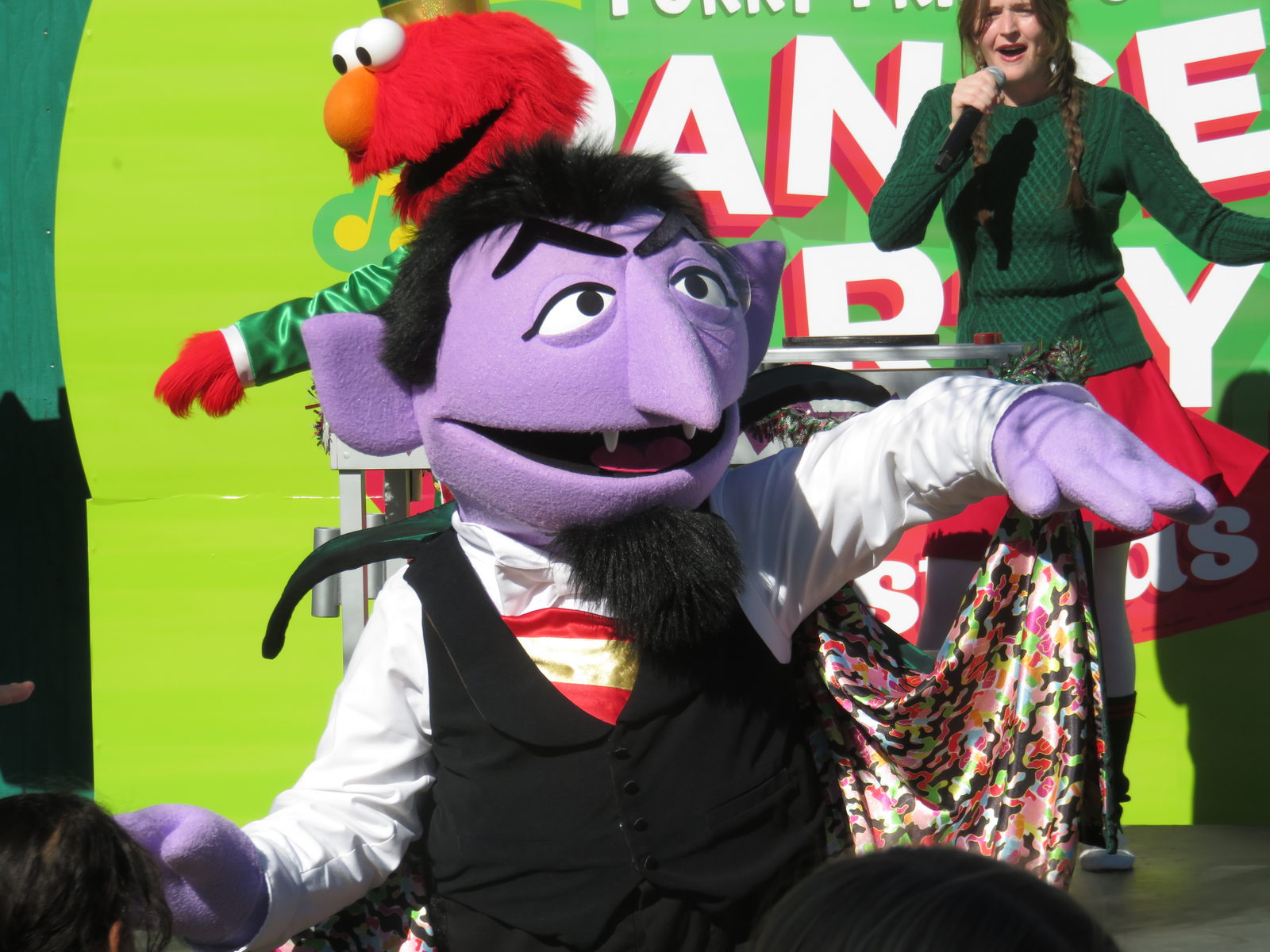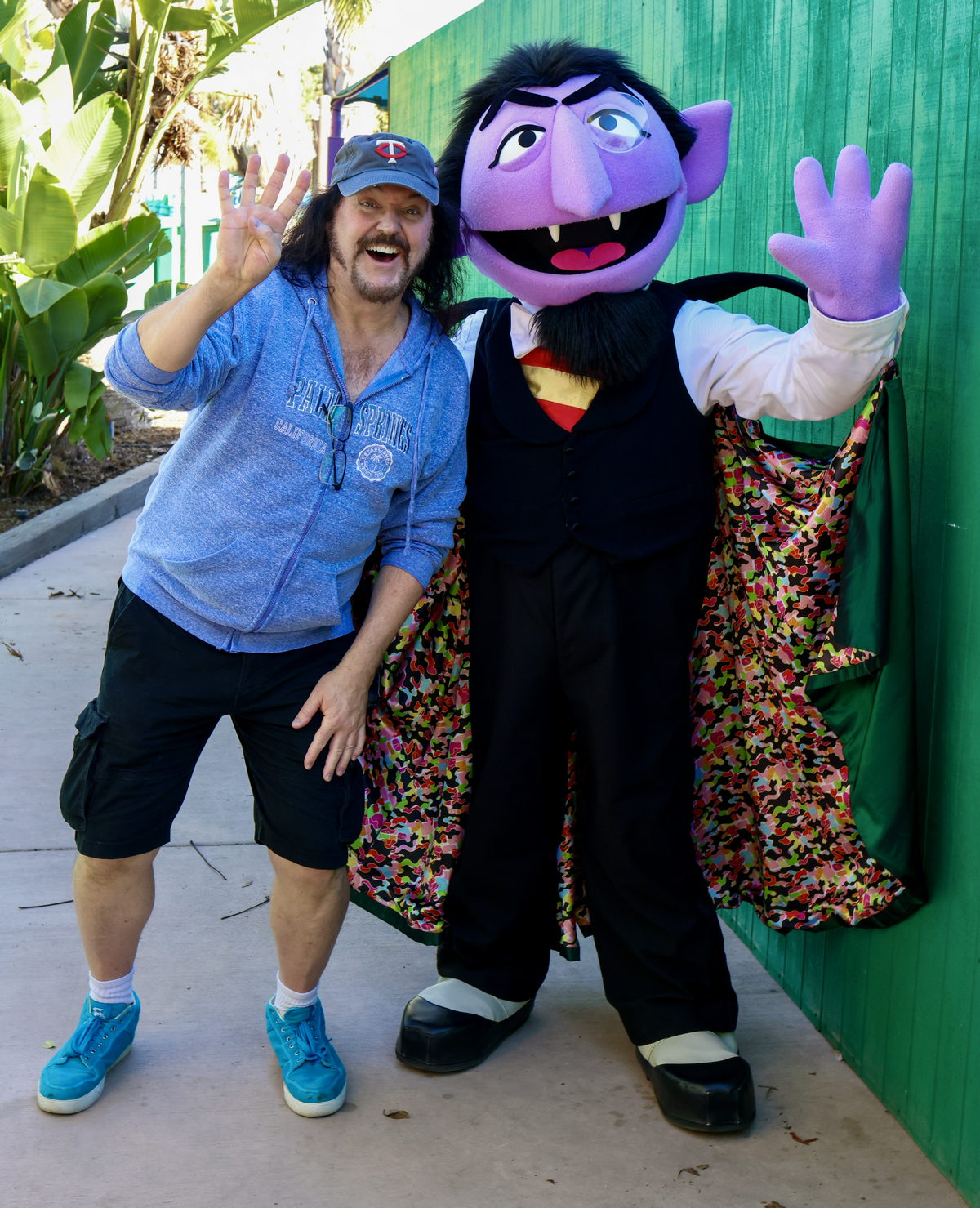 Saturday the 11th – “CAN YOU TELL ME HOW TO GET…?” – …To “Sesame Place!” There’s a waterpark in Chula Vista called “Sesame Place” that’s “Sesame Street-themed.” The water park attractions were shut down for the season, but the rest of the park was open for rides and fun. Personally, I just wanted to go there to shop, but there were plenty of other things to do as well! Plus, the park is right next to where we’d be on Sunday night for the Vet’s Aid concert, so it allowed Officer Mark and I a chance to do a little “recon” to prepare. I loved seeing the costumed characters and I noticed The Count was part of Elmo’s Dance Party. I didn’t want to elbow my way past the many children that were surrounding him during the show, so I asked a few management-types if there was any way to get a shot with him after the show. They accommodated me and I was thrilled! Then we got lunch and kept looking around. I met Cookie Claus (Cookie Monster dressed in a Santa outfit) and did a cool photo op with Grover. Personally I feel it’s a little too soon for Christmas stuff, but listening to the Muppets singing Christmas songs on the overhead speakers didn’t bother me a bit. The parade down the main street was great, and I did a HUGE amount of shopping afterwards. I won’t tell you how much I spent, but I carried out two large sacks of souvenirs. The only bad thing was, the park is completely cashless. Normally I like to spend cash and places like this, but it was all on the card. Bizarre, since I know the merchant takes a hit with fees for credit card purchases, but cash is king. We got back to the hotel and found Scott and Katy at the beach by the fire pit. They had just had a 13 mile bike ride around San Diego and Scott was relaxing with a nice cigar. I thought that sounded like a good idea for later, so we went to dinner at Pizza Nova (TERRIFIC!) and then went to the local cigar shop to do some shopping for a nice cigar for the night. I brought out my Bluetooth speaker and we listened to some tunes while the fire pit blazed away, and Scott, Katy and I enjoyed our cigars. Honestly, that moment was probably my favorite part of the entire weekend. Hanging out with good friends, enjoying the boats, the ocean, cigars, tunes and fire. It was a gorgeous night! One that I will never, ever forget.