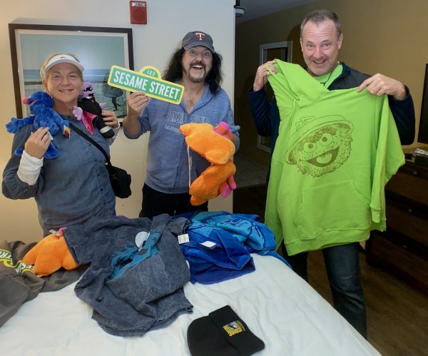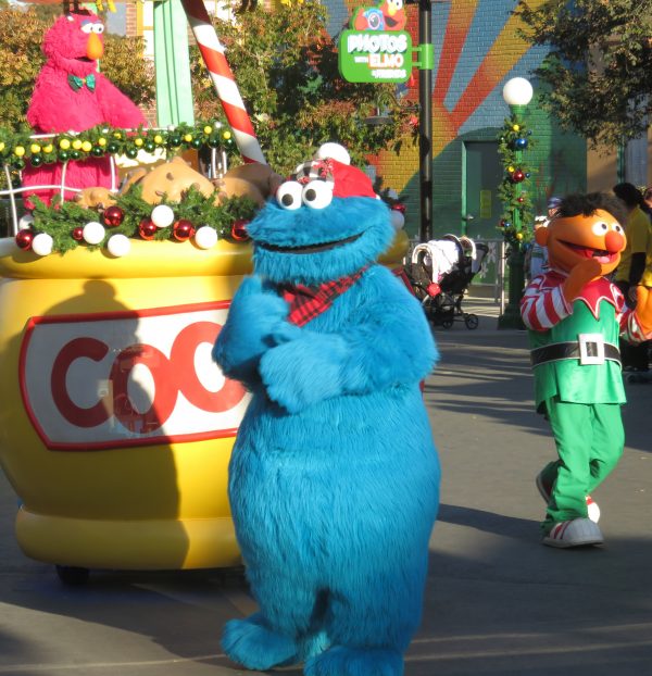 Friday the 10th – BAD STEAK AND FREE DONUTS! – First thing in the morning Officer Mark and I climbed into the Gray Ghost and went to Balboa Park to visit the Comic Con Museum. It’s a great facility and we had a great deal of fun. They had a large canvas on the wall in one of the interactive rooms, and they invited people to draw a picture on the canvas and contribute to the piece. I drew a Popeye (even though it was challenging with thick-tipped markers) so it was fun to be able to be a part of the museum. On the way back to the hotel we needed to pick up my friends Scott and Katy at the airport. But their flight wouldn’t land until 1:00, so we had about an hour to kill. Officer Mark and I hit a little café to get some lunch. Scott texted me that they had landed, so we hopped in the Gray Ghost and headed to the airport. We found them with no problem and took them to the Kona Kai, where they too would be staying. They got checked in and settled, and when we visited their room we noticed that they had a great little beach outside their room, complete with fire pits and relaxing chairs. It was still daylight so the fire pits weren’t lit yet, but it was fun sitting there chatting and watching all of the cool boats and cool dogs that went by. I took a short nap in my room and then we headed to dinner. We went to a place that had a nice atmosphere, but I made the mistake of ordering a mis-STEAK. I ordered a filet mignon, but it was chewy and not very good. I sent it back and got a tuna melt instead. I dropped Scott and Katy back at the hotel, and Officer Mark and I headed to a local grocery store to get some snacks and supplies. When we came out of the store we saw the guy in the Krispy Kreme truck. I said, “Awesome! The Krispy Kreme guy is here!” He said, “Hey. You guys want some donuts?” HUH? He gave us two dozen free donuts that he said were “go-backs.” Apparently they hadn’t sold that day, and they can’t keep them on the shelf longer than that, so they were just going back to the plant to be thrown away. Awesome! Free, PERFECTLY GOOD donuts! A guy was coming out of the store and he saw our good fortune and cheered. So we gave him one of the dozen of donuts for his family. Between Officer Mark and I, I figured we’d never make it through ONE dozen, let alone two. So it was nice to share our winnings. I got back to the hotel and relaxed, and looked up “Sesame Place” on my tablet. That’s where we were headed on Saturday morning!