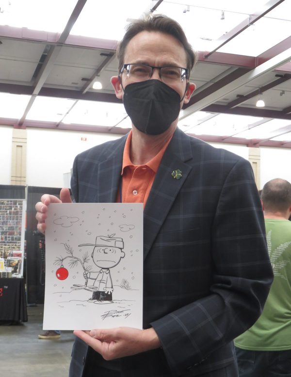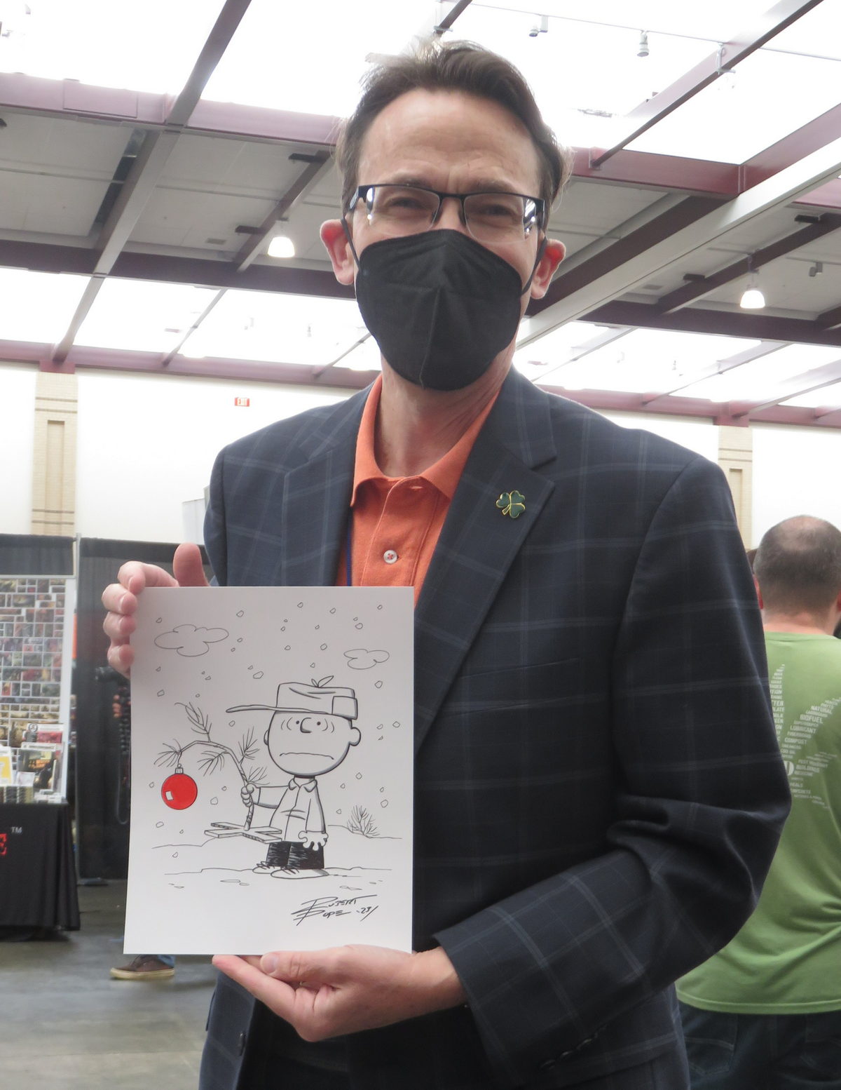 Sunday the 22nd – CHATTANOOGA COMIC CON: DAY 2 – TOODALOO TENNESSEE! – The con started at 11 and I was there on time and ready to sign. I met some more great people, and went over to the Wildefell booth to check on my wolfies. They were sleeping soundly. When I went to their booth the handler apologized that he didn’t know who I was when we chatted on Saturday. I told him it wasn’t any big deal, because Voice Actors are seldom recognized by their looks alone. Come to find out his daughter is a HUGE Bleach fan, and loves Renji in particular. I did a few lines with Renji’s voice for her and she said, “I’m shaking!” Then she sprung up from her chair and gave me a great big hug. I love knowing that the work has the kind of effect on people. It makes me feel wonderful. I signed a Renji photo for the wolf rescue and headed back to my table. Later on a young man named Diesel came to my table with his dad and was marveling at my photo of Jon Arbuckle. But as it was late Sunday, his dad said the kid had already spent his allotment of money. Call me a softie, but if I meet a kid who’s really a fan of any of the shows I’ve worked on, I don’t feel right about holding out for payment. I signed a Jon Arbuckle photo for him and it made his day! Come to find out, Diesel was a Jon fan, but his mom was an Invader Zim fan! Robert Pope is an artist who has been working with the Charles Schulz family for years as their approved “Peanuts” artist. He was at his table sketching, so I ran over and had him whip up an original sketch of Charlie holding the famous Christmas tree. My request was that the only color in the sketch would be the red ball on the tree. Robert told me one of the shows he used to animate was “Harvey Birdman,” and I told him he probably animated some of the scenes I voiced! What a small world. The show closed and I headed back to the hotel to pick up the luggage that I had checked with the front desk earlier. I changed my shirt and got on the bus so Todd the driver could take us back to the airport. John DiMaggio, Billy West, Emily Swallow and others were all on the bus. It told Todd to drive very carefully, because if (God forbid!) we crashed, the world of cartoons would stop! But he got us there safely and on time. Nobody was in line at TSA so we breezed right through! It seemed like all of the actors were taking flights to different places, so none of us would be on the same flight together. We said our goodbyes and found our gates. I had plenty of time before my flight, so I grabbed a spot at the little eatery and had some dinner. By the time I was done eating a crowd had gathered at the gate as take-off time was getting close. I slept all the way from Chattanooga to Dallas. I took the Skytrain again to get to a different terminal. As I was waiting to board the flight to Dallas I spotted my pal and fellow Voice Actor Todd Haberkorn who was also waiting to board. He was at a show over the weekend in Florida and was heading back to L.A. as well. Todd was also at Voices Against Cancer in Sioux Falls back in July. There were lots of “celeb-types” on our flight, as they were heading back to L.A. from a horror convention in Kentucky. I also saw fellow Voice Actor Zeno Robinson on the flight. It was fun hearing my voice on the American Airlines speaker system again. I don’t think I’ll ever quite get over the thrill of that! I was amused at the dork sitting in the seat in front of me, as I could clearly see what he was texting on his phone. He was on all sorts of dating sites, sending women slightly vulgar messages and looking at photos. He would come across a photo of a woman, and then zoom in on various parts of their bodies. The guy was obviously clueless to the fact that anyone could see what he was doing, but perhaps he didn’t care. I thought he was pretty idiotic for doing that on something as public as a flight. But oh well. I actually felt kind of embarrassed for him, as he was clearly completely devoid of class. All four of my flights over the weekend were perfectly on time with no hiccups or delays. Hooray for American Airlines! It was fantastic. We got back to L.A. right on time, and I texted Emily to let her know I was waiting. With all of the crowd, the traffic, and the construction going on at LAX, it took her a while to get to me. But I got in her car and we headed back to my house. It was good to be home, and it was a wonderful weekend! I’m definitely a Tennessee fan!