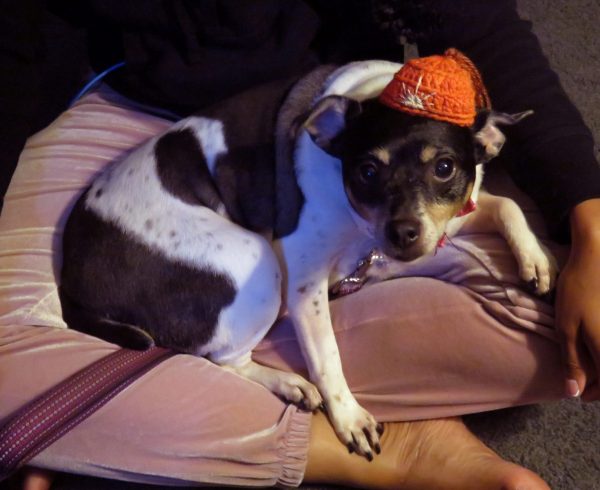 Saturday the 5th – “HOOCEY-GO?!” – My mission was to pick up some paint and supplies for that evening’s work on the Christoween set. I needed some gray paint for the fireplace stonework, and I picked up a few extra items as well. I would be spending the night working on the set while I waited for Angi to get off work and come join me for Laurel & Hardy Theatre later. I went to the grocery store and picked up some items, including Rocky Road ice cream for Angi. I got a late lunch at Togo’s, which included their delicious, new barbecue beef sandwich! Then I drove to my box to pick up a very valuable package that had just been sent. It was the summer sausage that I would be including on my Chef Boyardee pizza later! I was excited for the evening’s event with my guests Angi and Khloestine! When I got home I fed Spook his magic food, and he ate it right up! Fantastic! The more he eats his prescription food, the less urinary problems he’ll have, and that means no wetting around the house! I hardly ever get calls on my home phone, but when I got home I saw that I had a message. It was the vet’s office calling with Spooky’s results from his exam. Unfortunately the news wasn’t great. He is in late stage 2 kidney deficiency, and as a result I’m going to need to give him daily subcutaneous injections of fluids. They said I could make an appointment to come by their office and they’d show me how to do it. This was not the news I was hoping to hear. Rats. I tried to take my mind off it by working diligently on the Christoween fireplace. I got it all finished and it looks great! I took my nightly WOG and spent some quality time outside in the anti-gravity chair. It was cool, pleasant, and quiet. When I sit outside I can sometimes see our property guard who often sits in my purview. Though he’s quite a ways away, I can see him there at his post at night. But I saw him get up from his chair quickly, tear off his jacket, and dance around like crazy. I ran over to see if he was OK. He said he saw a spider crawling on him and he hates spiders! I looked him over with my headlamp and assured him that the spider was long gone. But that was a bit scary! I came back inside and made a Christoween wreath – complete with a giant eyeball and lots of black, faux shrubbery. I also added a few bows and some spiders – in honor of our security guard’s recent ordeal. Just as I was finishing up I got a call from Angi that she was on her way over after she stopped at home and picked up Khloestine. Once they got to my house we chatted for a while, and while Angi got a few hours of sleep, I set everything up for “Laurel & Hardy Theatre!” I made the dough for my pizza, got the Tranquility Zone properly situated, cleaned up, made the pizza and heated up Angi’s soup (she doesn’t eat meat – or Chef Boyardee pizza). I brought the trays of food upstairs to the Tranquility Zone and we got set up. Angi randomly picked out the title of the first film we’d watch – “Below Zero.” We put Khloe’s fez on her and she looked adorable, even though she wouldn’t leave it on for very long. At least we got a good photo of her wearing it. The second film she picked out of the 40 Shorties Fez was “The Hoosegow.” Hoosegow (pronounced HOOCE-gow – like “loose cow”) is an antiquated term for prison. But Angi, being young, thought the title was ‘hoocey-go.” I thought that was quite funny, and I’ll most likely be referring to that film as “The Hoocey-go” from now on.