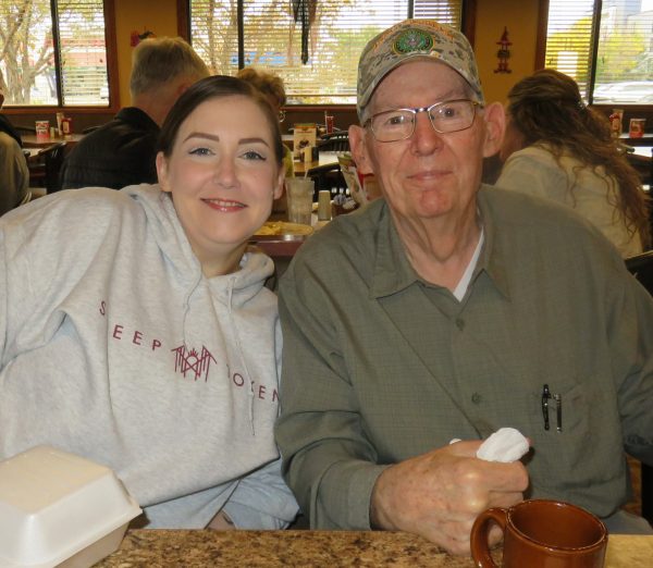 Monday the 20th – HEY IT’S GOOD TO BE BACK HOME AGAIN! – I packed up some last-minute things and hauled everything to my car. I checked out of my room, gassed up the car, and went over to the Fry’n Pan to meet my dad and Lacey for breakfast before I split town. It sure was nice having a meal with my daughter and my dad. I sure wish mom could have been there too. But I’m so happy with the way things are now. It’s really great to have Lacey (and her wonderful family) back in my life! I drove to the airport, checked in for my flight, dropped my luggage, turned the rental car back in, and headed up to go through security. The TSA guy looked at me and said, “You look really familiar. Why do you look so familiar?” I said, “I dunno. I’m a Voice Actor.” He asked, “Which one?” I said, “Wally…Wingert.” He said, “Wow! What are you doing here?” I told him I used to live there and come back from time to time to visit family. He said his name was Brandon, so I thanked him and went on my way. As is my prayer every time I fly, I always hope for things to be safe and on-time. So far so good. We left Sioux Falls right on time headed for Denver. I had a window seat on the flight so I could look out over the large, puffy, billowy clouds. It had been pretty overcast and dreary in Sioux Falls when I left, but when you get above the clouds all your perspective changes. Amazing. We got to Denver on time, and I found my next gate, which thankfully was only about 25 gates away. I had time to get a pizza and wolf it down before we boarded the flight for L.A. But once I got the headphones on and my cap pulled down over my eyes, I nodded off for the majority of the flight. Once again I had a window seat, so I opened the window and looked out over the desert terrain of the eastern part of California. Eventually we got into civilization, and were nearing home. We touched down a few minutes early before our appointed landing time of 5:20pm. Overall the entire weekend was wonderful – safe and on time. And you can’t ask for much more than that. I got back home, saw Spook and gave him some cuddles and unpacked. I’ve got a fairly busy week coming up, and a session early the next morning, so I got set up for that. I also wrote Wally’s Week and took my WOG again (it was good to be back at it!) and spent a brief time in the anti-grav char outside. A couple of little raccoon friends wandered up to me, and then they saw me move and took off running. Cute! As nice as it is to go visiting, it’s also really nice to get back home again.