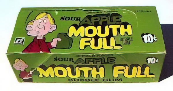 I was just talking about this amazing gum the other day. Mouth Full was truly that…a real mouth full! For a dime you would get a huge square chunk of sour apple gum that was amazing. My pal Chris and I used to walk downtown as kids, chewing our mouth full, and laughing so much that we we dripped sour apple gum juice onto our shirts. Good times!