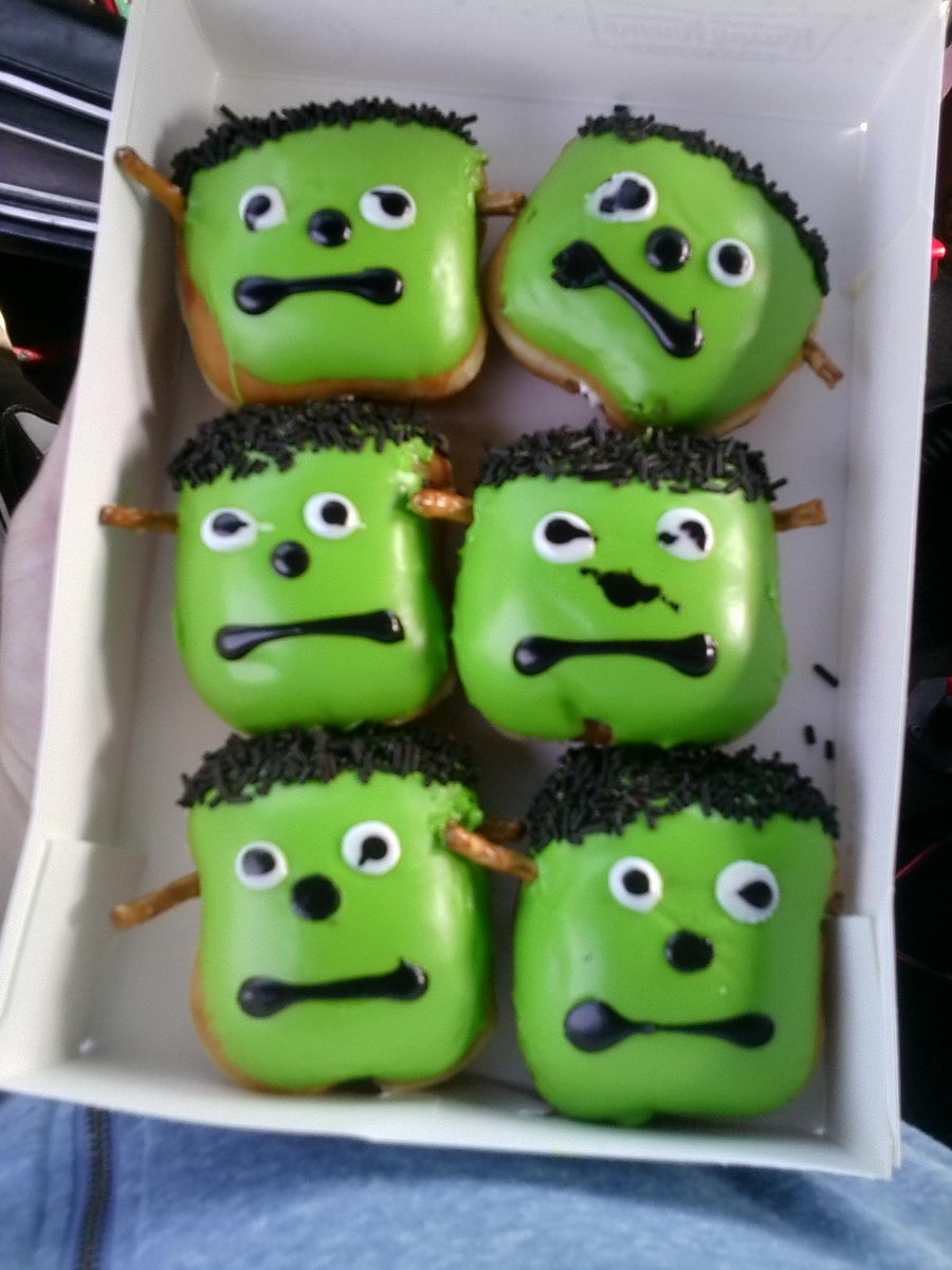 Wednesday the 21st – PRINTER PRONTO! – There were some more packages I needed to grab from my mailbox, and then I had to stop by the cleaners to get my comforter. I stopped by the Burbank Auto Doctor to get an appointment to get an oil change and standard maintenance done on my Gran Torino (it’s been FOREVER) and then I headed over to an auto audio expert to see if they could get my tablet and my car’s audio system to talk to each other. They didn’t have any luck either. There was some kind of barrier wall between them! I stopped by Burger King to get some lunch at the drive-thru, and then hit Krispy Kreme for some donuts. My pal Jim Ojala had Tweeted out earlier that Krispy Kreme had “monster donuts!” That is, donuts made up to look like classic monsters for Halloween! When I found out that the Frankenstein ones were the classic cream-filled, I knew I had to get a half dozen! They’re amazing, and to be honest, the little pretzel neck bolts are nothing short of inspired! Since I was informed by my warranty company that my laser printer wasn’t able to be repaired, and that they were sending me a check for the full value of the printer, I was on a mission to find a new laser printer. I liked the brand I had been using, but the guy at Staples told me that they were having trouble keeping that brand in stock because of all the manufacturing trouble in China. I found a demo model of the kind of printer I wanted, but he said the closest Staples store that had one in stock was in Costa Mesa. NO WAY was I driving to Costa Mesa for a printer. So I just bought some ink for my inkjet printer and headed home. But my little voice told me to go to the Staples in Studio City and see what they had. I looked around a bit and BINGO! There was the exact model I wanted! I grabbed it right away! I also got a brand new office chair. The one I had been using for the past couple of years was too wide and cumbersome; not streamlined at all. And it wasn’t tall enough either. I think this was more of a “gamer’s” chair, rather than an office chair. The new chair I selected looked a bit like Darth Vader’s costume; ribbed, black vinyl. Plus it was thinner and taller! Just what I needed. I decided to donate my old chair to my church. The stuff just barely fit in the Torino (good thing I didn’t have the Mustang!) and I got home and unloaded everything. I fed the kids, did a little work around the house and did a bunch of auditions later that night. I went to Denny’s to get some late-night dinner to enjoy during another episode of “The Time Tunnel!” When I walked Roxy on our late-night stroll through the neighborhood it was misting out. I guess summer’s really over!