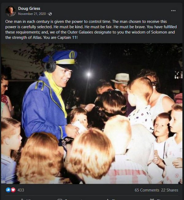 When I was together recently with my old “Bat Pack” (my South Dakota buddies Chris and Dave) we talked about local TV legend Captain 11. When I saw this post on a Facebook page I just had to grab it. The words in his show opening are classic to kids like us, and still give me chills.