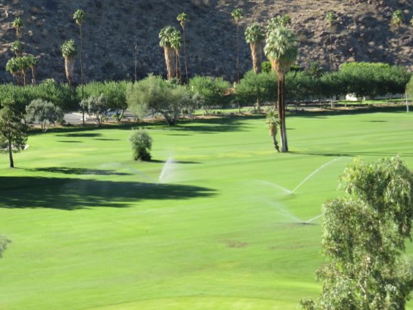 Drought? What drought? Even though California is currently experiencing state-mandated water restrictions, I noticed in Palm Springs that the golf courses were all green and beautiful, and were watered about four times a day. Hmmm…