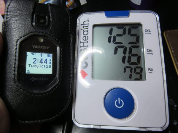 Monday the 28th – COOL CONCERT COLLAGE! – I woke up laughing, and I always love that. I must’ve had some funny dream. My assistant and house sitter Emily met me for lunch at Paty’s and I got her paid for watching Spook over the weekend while I was at the ELO concert. I got back home and met up with my pal Sara so she could trim Spook’s nails. She has a great set of clippers and the patience to sit with him wrapped up in a towel while she gives him his manicure (which he hates). Then I headed over to CVS to get some photos printed for my new concert collage that I’m planning. Since I had so many great mementos from the ELO concert, I decided to do what I did with the cool stuff I acquired at the McCartney concert back in 2016 – make a framed collage! Where I’m going to hang it, I have absolutely NO idea at this point. But I’ll find space for it somewhere. I picked up a few grocery items, and then headed to my local Michael’s to plot out the new framed piece. I got back home to do auditions and the sun was already starting to go down. I really hate that the sun goes down so early now. I relaxed, and then later took my nightly WOG (walk/jog). But it was much too cold out to spend any useful time outside relaxing in the anti-gravity chair. I hadn’t taken my blood pressure in a long time so I figured I’d give it a shot. The numbers that came back were astonishing! They are right! A regular exercise program makes all the difference. The first numbers were great, but as I continued to take my blood pressure the readings got increasingly better! When it went to 125 over 76 I snapped a photo to send to my doctor! WOW! I wrote up Wally’s Week and hit the hay.
