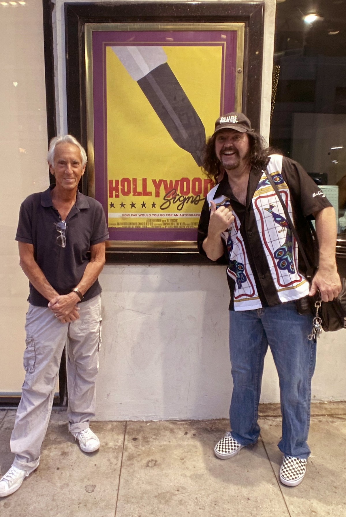 Thursday the 8th – ODD EVEN-ING! – This very, VERY odd day started with a call from my mechanic letting me know that the computer they installed was faulty. When they turned the AC on, it turned off. When they turned it off, it came on. Something was wrong with the programming. I’ve always thought adding computers to cars was a horrible idea, and this is one of the reasons why. So, it’s back to the drawing board as we wait for ANOTHER computer to arrive. The good news was that clouds and rain are coming by Friday night which will put an end to your long string of triple-digit temps. In the evening my pal Officer Mark came over to pick me up for our drive to Beverly Hills to attend the “Hollywood Signs” documentary premiere. Our plan was to get to the area where the theater was located and look around for some food. But in that particular area of B.H. there are literally no restaurants on Wilshire Boulevard for miles! And miles. And miles. And miles! Finally we happened across a McDonalds, so we cut our losses and went inside (it didn’t have a drive-thru). This is where the odd evening began. When I walked in I saw people standing around away from the counter. Since social distancing is still a thing with some people, I’m never sure if they’re actually in line to order, or they’re just standing around waiting for their order to arrive. I asked a lady, “Are you in line?” She said she was. So we determined that the guy standing behind her was the end of the line. Officer Mark and I lined up and got ready to order. But when the guy behind the counter said, “Next person in line,” the lady didn’t move. I was confused. I said, “Are you waiting to order?” She said she had already ordered and she was waiting to get her food. But when you ask somebody if they’re in line that normally means you want to determine if they’re waiting to order. Why would she be in line to receive her order when they simply call out a number when her order is ready? There’s no waiting in line needed. Bizarre. Then the guy behind the counter was not only behind a Plexiglas barrier, but he was wearing a mask and had a very thick accent. I looked up at the screens that normally feature the menu so I could make my selection. But the screens didn’t have any menu information. It was nothing more than a series of videos featuring beauty shots of all the food you could order. I was just trying to find a cheeseburger combo meal. But in speaking with the guy behind the counter, I wasn’t understanding anything he said. When we finally determined that what I wanted was a “number 7,” I ordered, paid and stepped aside to wait for my food. While Officer Mark and I were seated at a table eating our food, I saw the unending stream of pretty videos on the TV screens touting their amazing ice cream desserts. There were dancing Oreo cookies, and a shot of a cold, delicious Oreo McFlurry that looked delightful. After our meal I went back to the counter to order one, and the masked, thick-accented guy said they didn’t have ice cream. Really? I just spent a half hour watching a hypnotic video about how great their ice cream treats are. Bizarre!! We got to the theatre and parked, and when we walked up to the ticket window our friend Elliot Lurie arrived. We got a few pictures and hung outside chatting. When I talked to the gal behind the ticket window and gave her my name for the guest list, she handed me a ticket and a mask. A mask? She said wearing masks inside was mandatory. WHAT? Still?! Sure enough, a posted sign stated that a theatre mask mandate was still in effect. This lady had shoved a mask through the ticket slot with her fingers. I had no idea where those hands had been, but her fingers had most likely just handled money, as well as untold other dirty things. And wearing this mask she shoved at me was going to keep me safe from a variety of nasties? Hardly. I told her I had my own mask, and dug through my bag to find one. Officer Mark asked what was going on and I told him that masks were still mandatory for this screening. He didn’t seem happy at that news. He told me he had checked the theatre on Yelp recently, and the reviews weren’t very good. It was stated that the theatre’s air conditioning was nonfunctional. More bad news. Sitting in a non-air conditioned theatre wearing a mask didn’t seem like a good idea to me, so this could be a very short evening. When we donned our masks and walked into the theatre’s lobby it was easily a hundred degrees in there. I bought a Diet Coke, some popcorn and some Reese’s peanut butter cups. When we walked into the theatre to find our seats it smelled like a gym. Even through my mask I could smell the odor of people sitting around sweating all day. Yup, a very short evening was in store. It was not at all the fault of the producers of the documentary, as the theatre they engaged for the screening had fallen short. I opened up my Reese’s peanut butter cups and they were completely melted. Utterly useless. When the producers went to the front of the theatre to welcome everyone, it was clear the sound system wasn’t working either. Apparently the guy in charge of the AC was also running the sound. I felt rather bad for them, as this was a very big night for them that they had no doubt anticipated for a very long time. When the movie started the sound was so loud it was literally uncomfortable. And the theatre’s sound system was NOT state of the art. The film’s audio sounded loud, shrill and flat. Was this a secret experimentation in torture techniques? The film was fantastic, but I could only take about 20 minutes of it. I was literally sweating through my shirt, and I know Officer Mark was sweating as well. It’s most likely why the place smelled like a gym…people sitting there sweating in the seats all day. We quietly got up and left and headed outside. Once we got outside and stood in front of the theatre, the bank across 
