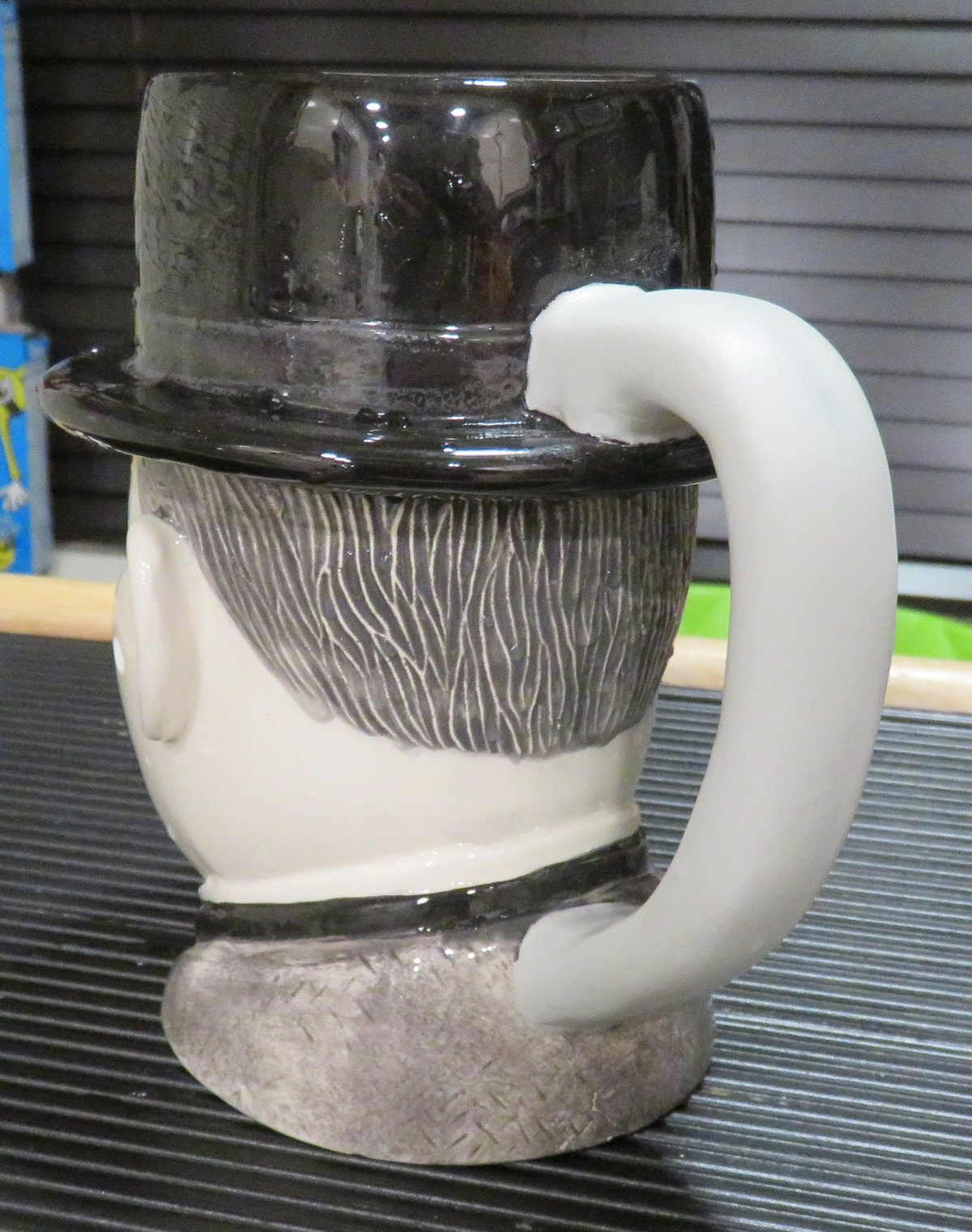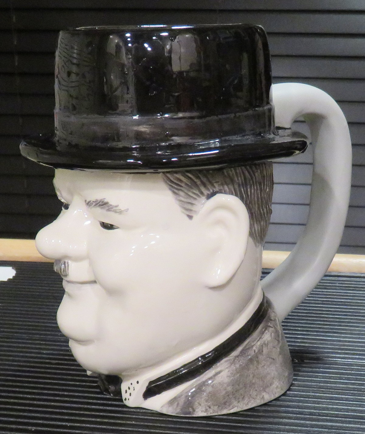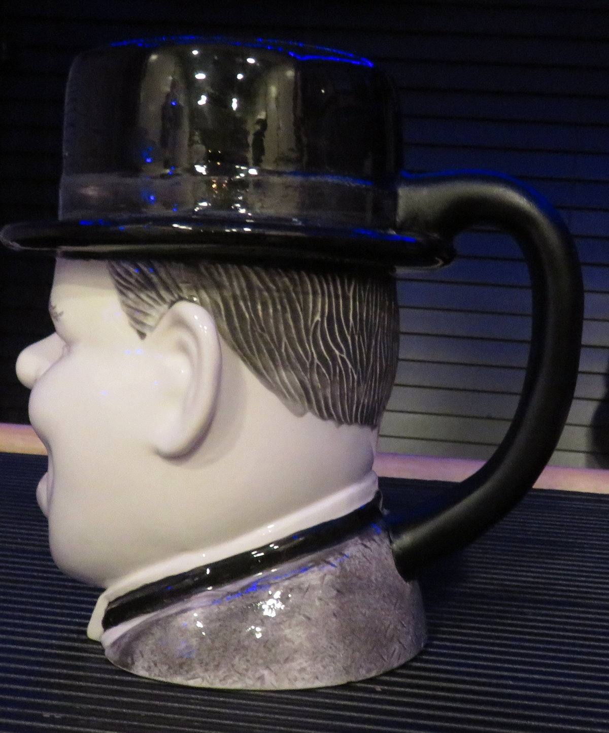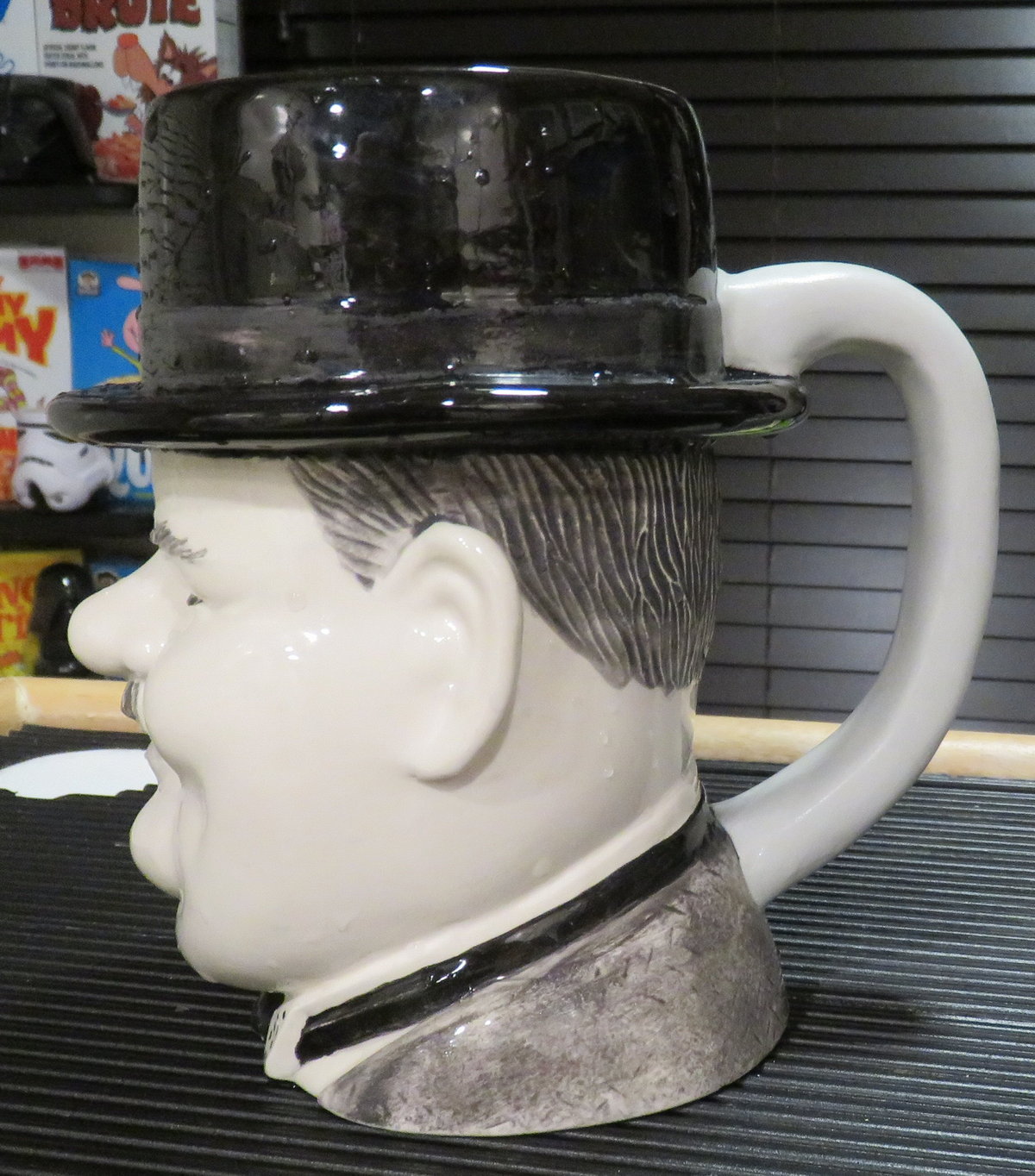 The continuing saga of the repair process of the broken Oliver Hardy mug – Once I rejoined the remaining pieces of the handle with Gorilla glue, I covered the entire handle with an epoxy putty called Magic Sculpt. After it cures it’s like rock! You can sand it, prime it and paint it to satisfaction.