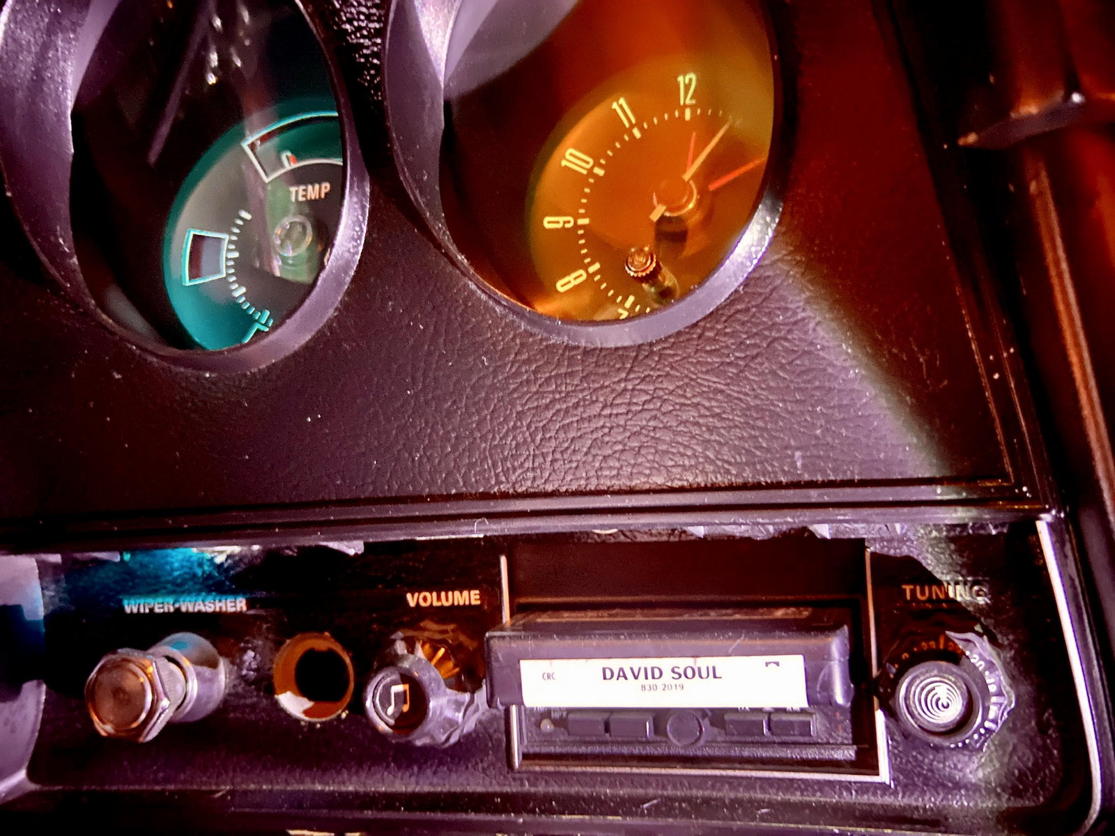 The Torino’s instrument cluster is bright and active, and we’re rocking out to some good David Soul tunes on the 8 track!