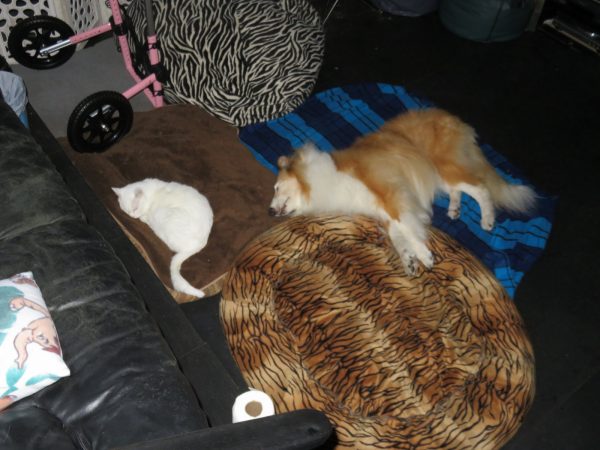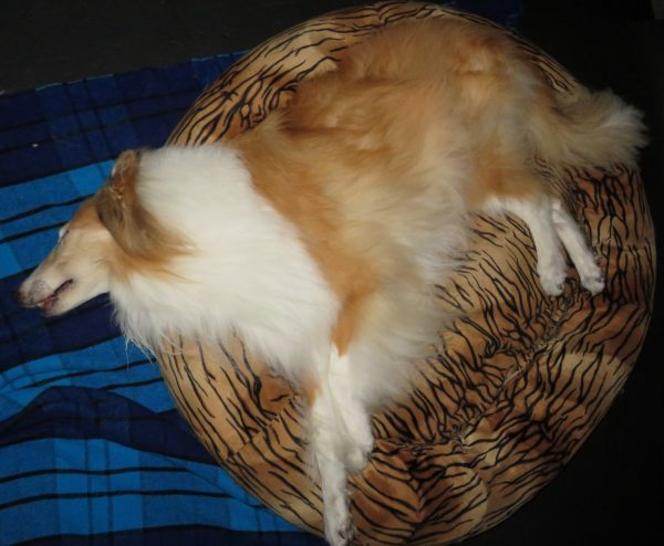Friday the 16th – RUFF DAY FOR ROX! – To start the day the maids came over to clean Planet Wallywood. But with all of the moving around, Roxy’s back legs were getting quite fatigued. I had to take her outside for a while so the maids could clean her area thoroughly. That didn’t help. She used to like to lie down in the lush green grass in our courtyard, but with the California drought currently going on, it’s nothing more than a dirt patch now. So she didn’t lie down, she just kept standing and walking. Soon, her legs were collapsing out from under her and she was falling. I took her inside to rest. Later I decided to try her out on her new wheel cart I bought. This would suspend her back legs just enough so her weight wouldn’t be on them fully. She could pull herself along with her front legs and regain mobility. But she clearly didn’t like being hooked up to that contraption and all she did was walk backwards. She couldn’t grasp the concept of going forwards. I could tell it was causing stress for her, so we went inside to rest. As I laid in the Puppet Room contemplating what I could do to make her life easier, I heard a loud crash downstairs. I looked over and Spook came darting into the room. I went downstairs and saw Roxy laying on her padding, and her food and water bowls were upside down. Apparently while drinking or eating, her legs just gave out and she crashed into her bowls, spilling the entire contents. She was panting rapidly and I could tell the whole situation was causing a great deal of stress for her. Poor girl. I gave her one of her strong pain pills in hopes that she would settle down and get some rest. I went to Ernie’s Taco House with my pal Sara and it wasn’t pretty. It was a pretty sad dinner where we discussed end-of-life plans for Roxy in case she got worse. I’ve never cried in an enchilada before, but there’s always a first time for everything. Considering that Roxy’s currently on medication for inflammation every day, and occasionally on medication for pain, and even occasional medication to stimulate her appetite, I started wondering just how fair it is to her to sustain her life with medications. But aside from the anti-inflammatories, she’s not on any other regular medication. Her spirit is still very much viable, but her body (and mind, in some instances) are starting to fade. This is the absolute worst part of pet ownership. I hate it. I just #@$%(& hate it. But, the good years you have together with your pet makes it all worth it somehow. Once Roxy settled down and the pain pill kicked in, I napped on the couch next to her. She slept for a very long time. She needed it. I paid some bills and did some accounting work later. Then I made some lasagna and watched another episode of “The Magician.” Roxy was sound asleep so she didn’t join us tonight.