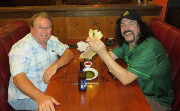 Friday the 27th – “HUTCH!” – This trip seemed to be all about seeing old friends, and I was loving it! I met my old pal Steve “Hutch” Hatt for lunch, and we spent a few hours laughing and telling tales of the old days. In Junior High, Steve and I were close pals and we both loved the show “Starsky & Hutch.” Since he had blonde hair, and I had dark curly hair, our classmates started calling us Starsky & Hutch. To this day he still calls me “Starsk” and I still call him “Hutch.” One of the greatest days of our friendship was when he and I were seated in the backseat of my Gran Torino while Paul Michael Glaser and David Soul drove us through Venice, California! After lunch I stopped by a restaurant to see my folks at their weekly coffee group. They wanted me to come by and meet their group. They were very curious about the business of Voice Acting, so I was happy to be able to answer all their questions. Then I drove out to the convention center and got my wristband for that weekend’s “Siouxpercon,” which coincidentally was going the same weekend I was back home for the ELO concert in St. Paul! I strolled around the convention floor for a few minutes and ran into a few old friends. It was terrific! Then I drove out to the airport to meet up with Smith so he could get on the rental agreement as a second driver. Since 3 of us would be driving to St. Paul on Sunday for the concert, but only 2 of us would be returning to Sioux Falls on Tuesday, (since I was flying back home from Minneapolis) Smith was the one that would be driving back to return the vehicle. I got back to my room and kept thinking about ways I could get that box of photos back to L.A., but I wasn’t coming up with a suitable solution. I don’t trust any of the shipping services with such valuable cargo, and I just don’t have room for them in my luggage on the plane. I’ll have to get them another time. On the way home I stopped at one of my old favorite food places. It was sure good to taste Taco John’s food again! Then it was off to the Olive Garden for my sister’s birthday, which also just coincidentally happened to fall during my trip. It was great having the family all together and I’m glad I happened to be in town for the gathering!