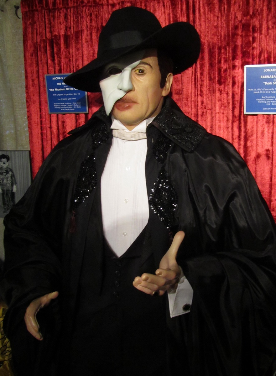 Tuesday the 9th – FLOODING THE SYSTEM! – When I got up at noon I got a call from one of the producers of the Cher concert. They wanted to add another line to the Ringleader’s part in the concert, so we sat on the phone while I recorded on my end, and we hammered out 25 takes of the additional line. Then I e-mailed everything to her so it could be put into the show. Though my voice is better, it’s still not up to 100% yet. I decided to flood my system with water. Whenever I do a vocally stressful Voice-Over session, I am constantly drinking water to lubricate my vocal cords. This keeps them from stressing and creating hoarseness. I figured the same would be true for coughing. So my new policy is, when I cough I take three large swallows of water right after it. I also am hoping that flooding my system with hydration will dilute the phlegm in my lungs which will make it easier to be expelled. The only downside is you have to go to the bathroom a LOT more than usual. But, it’s the price you pay. As the day went on my voice got better, and my cough got better. I think all the water was really working! When I finished up the Cher session I showered up and headed to my seamstress’ studio to check up on how the Dorothy of Oz bust was coming along. She had the costume cut and laid out on the mannequin bust and was getting ready to finish it up. It looked fabulous! I also picked up my freshly pressed Phantom of the Opera cape, and Karyn surprised me with the new little tuxedo jacket for my 12” Tony Clifton doll. (It’s a doll that I customized to look like Tony Clifton from a Mod Hair Ken doll from the 70’s.) I was going to be interviewed for a new Andy Kaufman documentary that evening, and I wanted to have the Clifton figure on hand to show on camera. When I got home I put the cape on the Phantom and it looked amazing. He looks much more authentic and elegant now. I put the new jacket on the Clifton figure and it too looked amazing. I took a short nap in the Puppet Room then got up to get ready for the Kaufman documentary. John and his crew arrived on time at 7 and we got my home theater lit and ready to shoot. I was still having coughing and voice issues, so I kept a cup of hot tea near me to take drinks between takes. The documentary will be called “Kaufman Lives” and it examines the legend of Andy Kaufman supposedly faking his own death. We had a lot of fun and the interview went very well. After the guys left I laid down on the couch for a short nap, and then I got up to do a ton of auditions. I walked Roxy on our late-night stroll. Thursday night would be a big night at the Comedy Store, so all day Wednesday I had planned complete voice rest, and to continue to flood my system with water. The auditions went well, and my voice is now almost completely back. If I can just minimize the coughing, ie: vocal cord stress…I think I’ll be alright. But the persistent tickle in my trachea is very annoying.