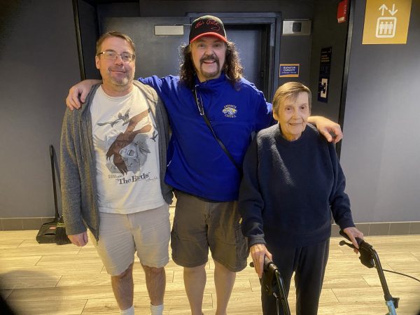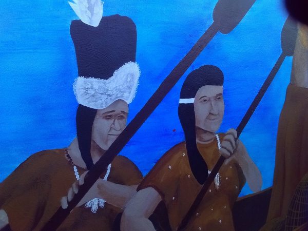 Thursday the 26th – SUMMER IS BACK?! – The forecast for the next few days calls for the high temperatures to be close to 90! GREAT! I had a follow-up appointment with my surgeon. There’s some talk about having to go back in about six months from now and have another round of surgery, but she said that would be in August or September. I really REALLY do not want to do this again, but such is life. We’ll see how things shake out over the summer and how the test results look. But the good news is…I’ll have all summer free to do fun things and fulfill my obligations. That includes prepping a new exhibit for this spring’s Monsterpalooza, having my daughter Lacey’s family out for a fun week in early June, going to the Laurel and Hardy convention in San Diego, going to my children’s cancer charity Voices Against Cancer, and going to the Connecticon in Hartford, Connecticut in July! Fabulous! I was afraid something may happen that would prevent me from doing some of those things, but it looks like my summer is wide open for fun! I met my pal Chris Malmin for lunch at Paty’s and we enjoyed the amazing weather. As we sat on the patio the great special effects master Rick Baker walked by. I recognized him right off. I said, “Bravo, sir. Big fan of your work.” He was a bit taken aback that somebody recognized him and he offered a kind, “Oh! Thank you!” After lunch I headed to the post office and parked my car. I looked closely at the mural that was painted on the wall directly across from the Post Office’s parking lot, and it showed Native Americans in canoes rowing to the shore. Upon more careful inspection of the art, I realized that the person in the back of the boat bore an uncanny resemblance to Stan Laurel! WEIRD! I got home and chatted with friends about my conversation with the surgeon, and I’m feeling pretty good about everything. I’m serious about staying on my high protein, low carb, and no sugar diet. In fact, the past year or so, sugared things started tasting bad to me. Sugared cereals didn’t taste good, baked goods, candies, and sodas were all too overpowering. I used to love the little Cokes in the glass bottles, but I was getting to the point where I could only drink about half, and then I was over it. So getting off sugar is probably something my body is telling me to do. We’ll see how it works out. There are plenty of excellent sugar-free options for candies by Russell Stover in case I have a craving. I worked some more on the photo albums, slept for a bit, and then got up to do more photo album work. In the middle of the night, when I like to take my WOGs, it was 67 degrees out! LOVELY! I even spent some time in the anti-gravity chair meditating and thinking. I really missed that! I came back inside and cleaned up around the house for the maids appearance on Friday.